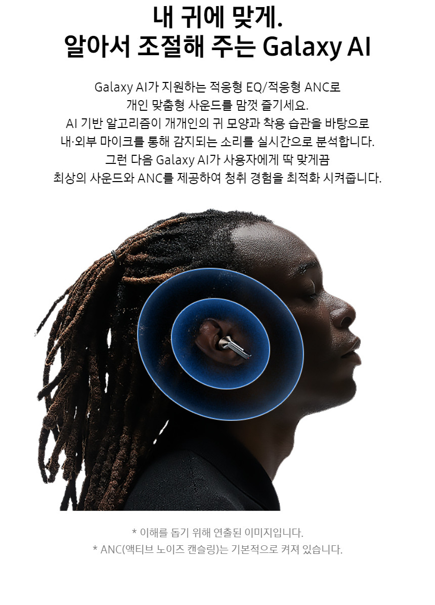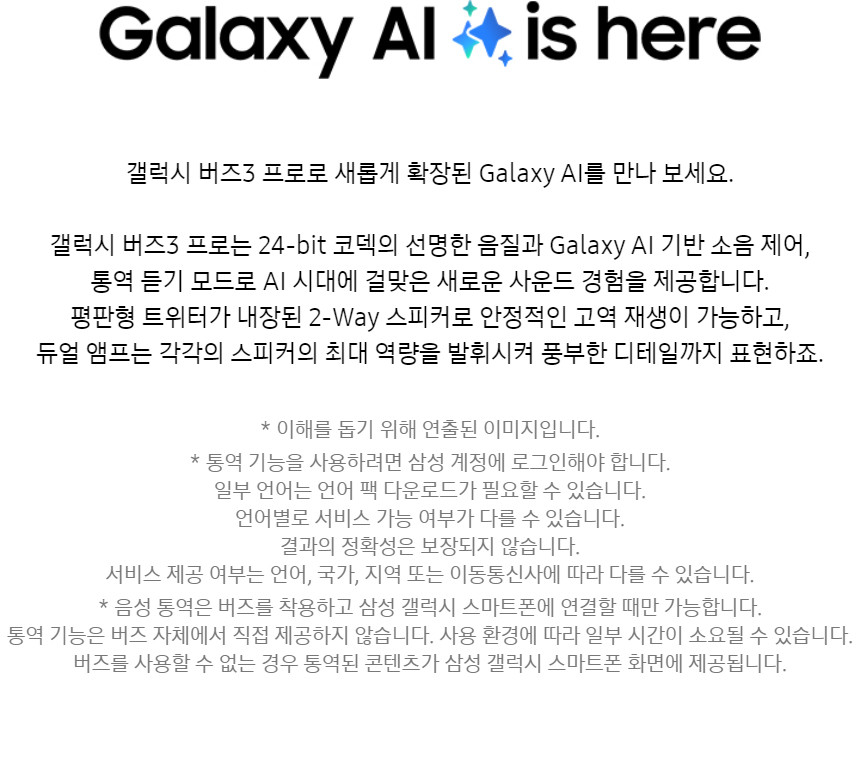 | 기능 | 2-Way 스피커, 듀얼 앰프, AI 기반 ANC, Galaxy AI 통역, 오토 스위치 |