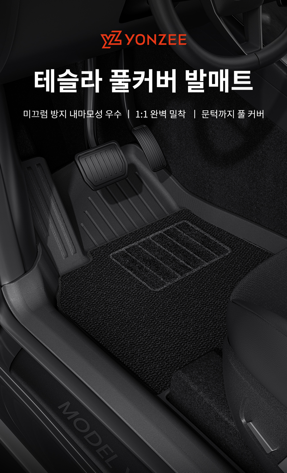 장착은 매우 간단합니다. 기존 매트를 제거하고 새 매트를 올리기만 하면 됩니다. 차량 실내 형태에 정확히 맞춰 설계되어, 들뜸이나 미끄러짐 없이 안정적으로 고정돼요. 마감선은 테슬라 순정 인테리어와 동일한 곡선으로 정리돼 있어서 ‘정품처럼 보인다’는 평이 많습니다.