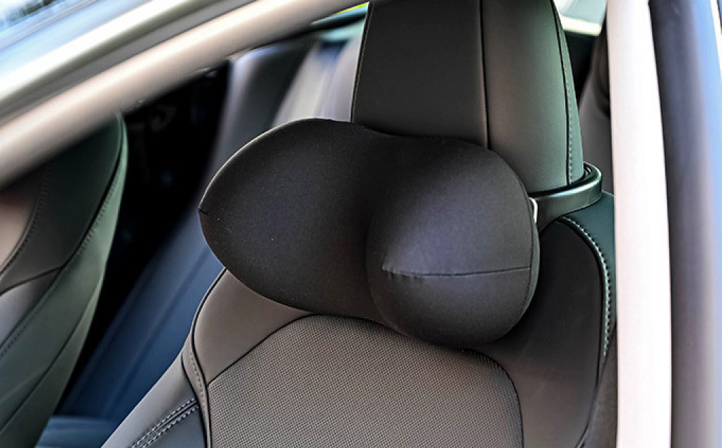 시트를 조금 뒤로 젖히고 이 목 베개에 기대면 간단하게 목 받침 역할을 해줍니다.
